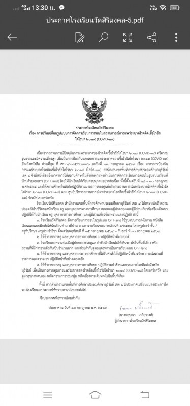 โรงเรียนจัดกิจกรรมการเรียนการสอน on hand 15 - 30 กค.64