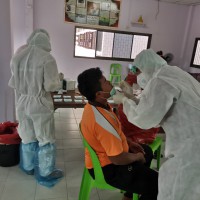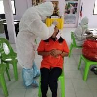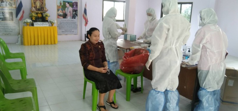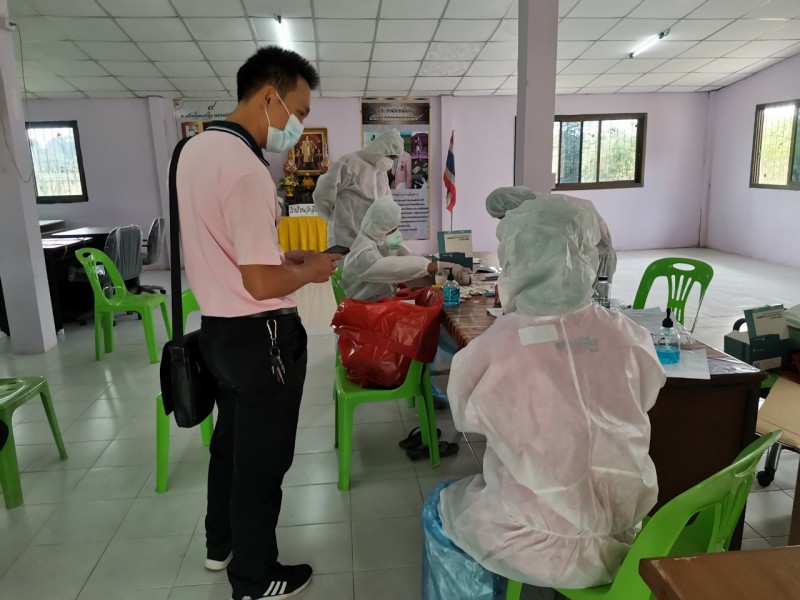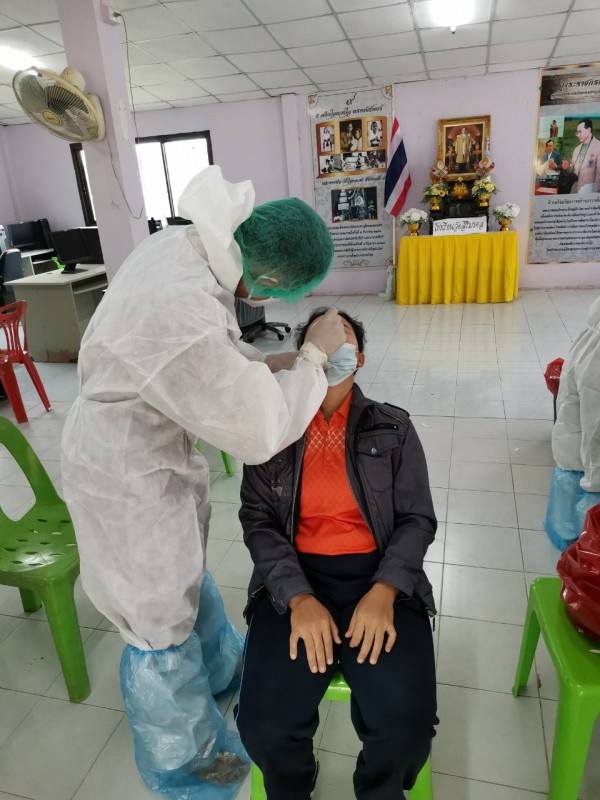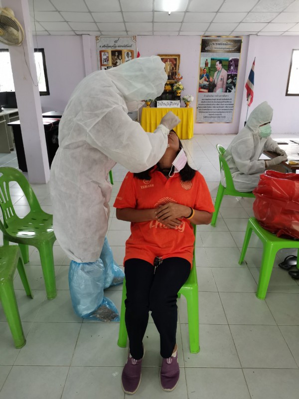 บุคลากรจาก รพสต.บ้านหนองแวงดำเนินการตรวจหาเชื้อโควิด19