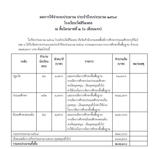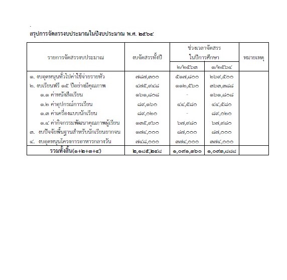 สรุปผลการบริหารงานงบประมาณระบบบัญชีการศึกษาขั้นพื้นฐาน ปีงบประมาณ พ.ศ.2564 |
