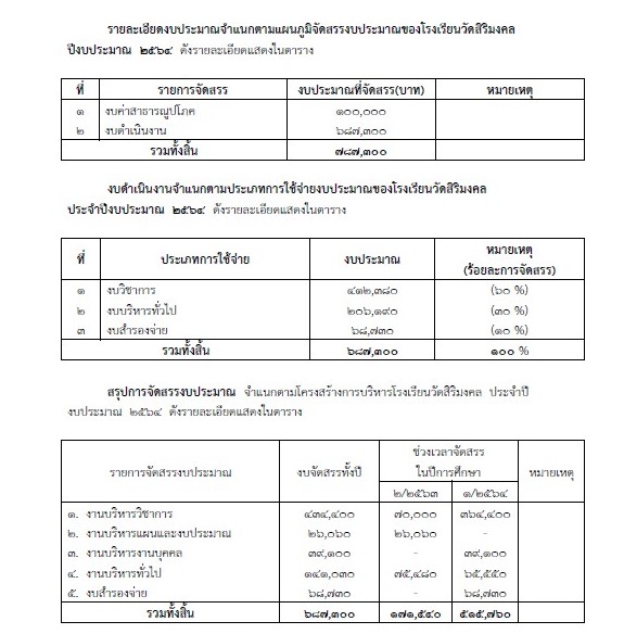 รายงานระบบบัญชีการศึกษาขั้นพื้นฐาน ส่วนที่ 2 2564 |