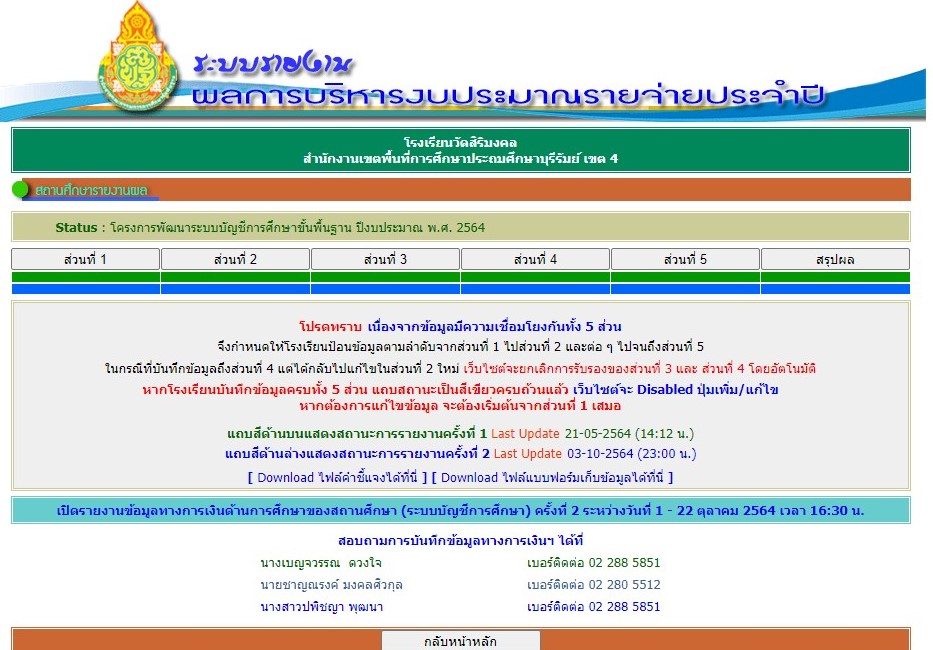 รายงานระบบบัญชีการศึกษาขั้นพื้นฐาน ส่วนที่ 4 ครั้งที่ 2 2564 |