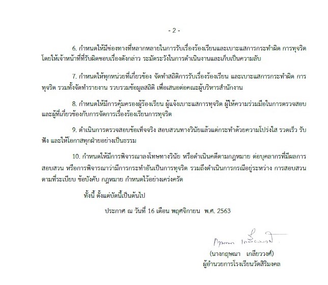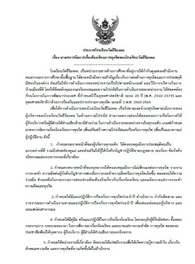 ประกาศมาตรการจัดการเรื่องร้องเรียนการทุจริตของโรงเรียนวัดสิริมงคล |