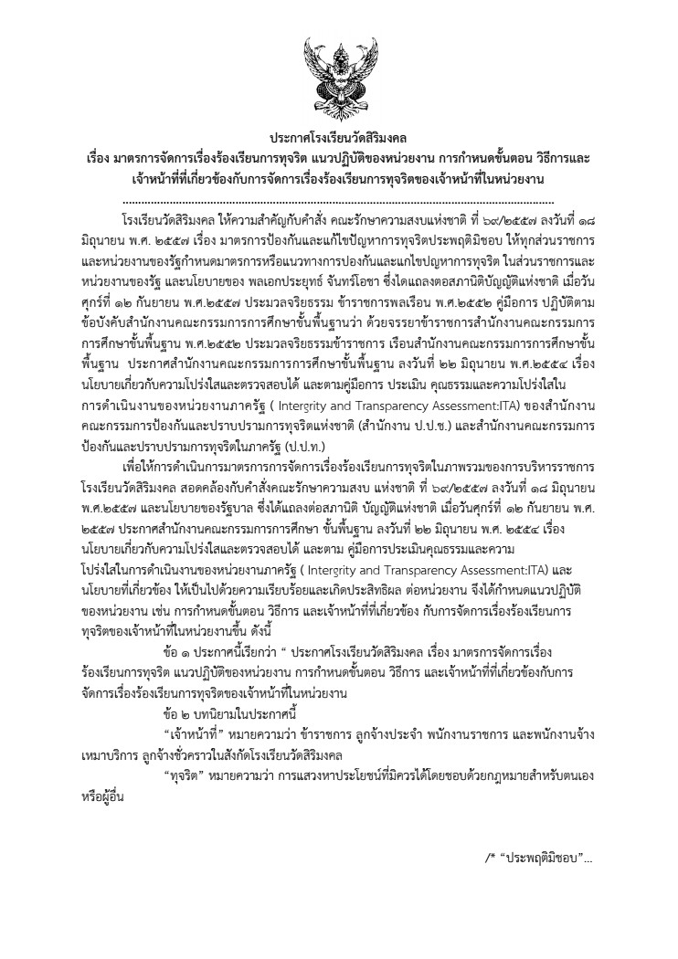 มาตรการส่งเสริมความโปร่งใสและป้องกันการทุจริตภายในสถานศึกษา